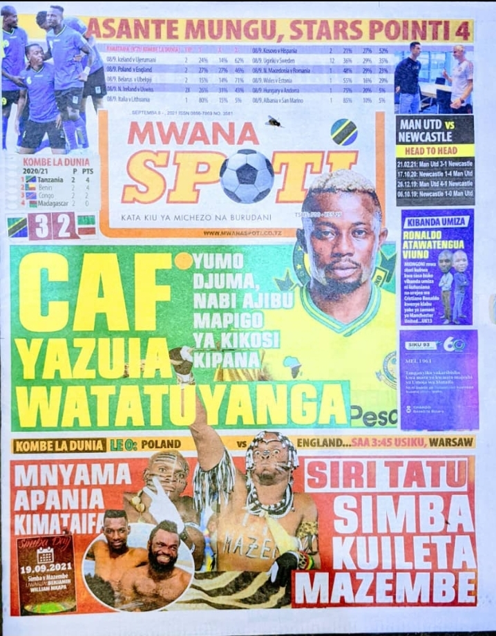 Magazeti ya leo Tanzania, Wednesday September 2021, Collection of front pages of Newspapers today for sports news, gossip and hard news.